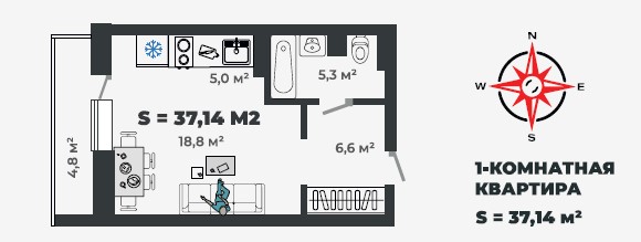 2-комнатная квартира 37,14кв.м. Чертыгашева 164