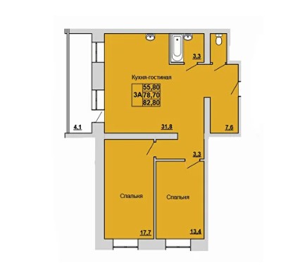 3-комнатная квартира 82,8кв.м. Кирова 185Б