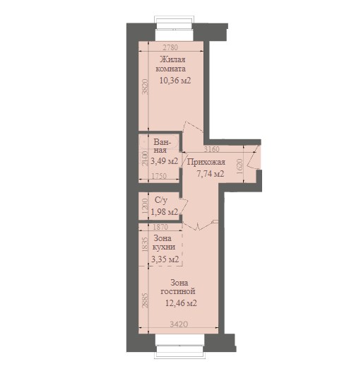 2-комнатная квартира 39,38кв.м.Буденного 78В