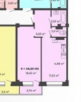 2-комнатная квартира 48,27кв.м. Генерала Тихонова 3