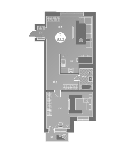 2-комнатная квартира 83,2кв.м.Генерала Тихонова 14