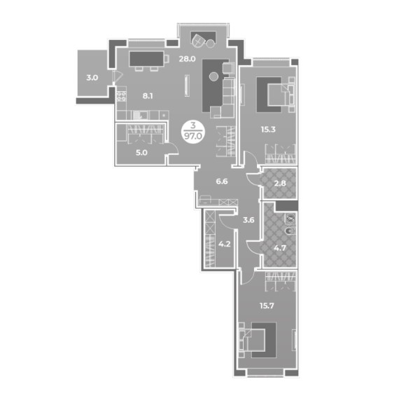 3-комнатная квартира 97кв.м.Генерала Тихонова 14