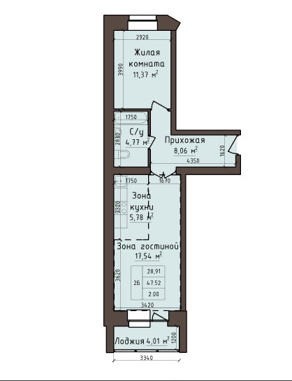 2-комнатная квартира 49,52кв.м. Авиаторов 5
