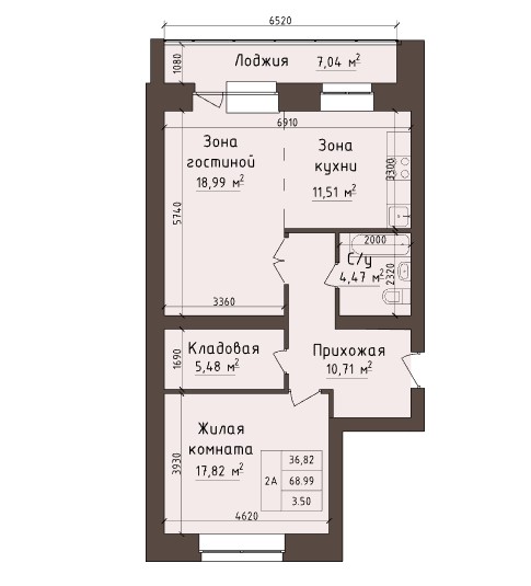 2-комнатная квартира 72,49кв.м. Авиаторов 5