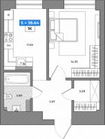 1-комнатная квартира 38,64кв.м. Небесные грани, Полярный