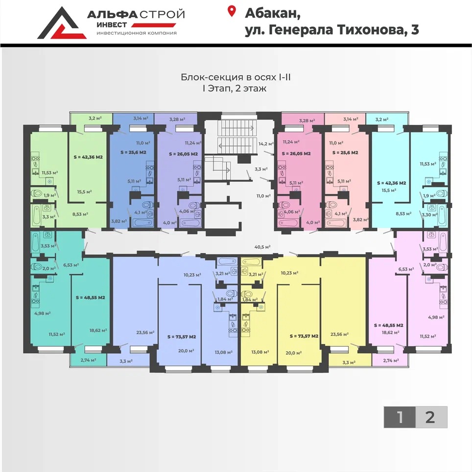 1-комнатная квартира 43,13кв.м. Генерала Тихонова 3