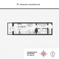 1-комнатная квартира 27,15кв.м. Минусинск, Трегубенко 65