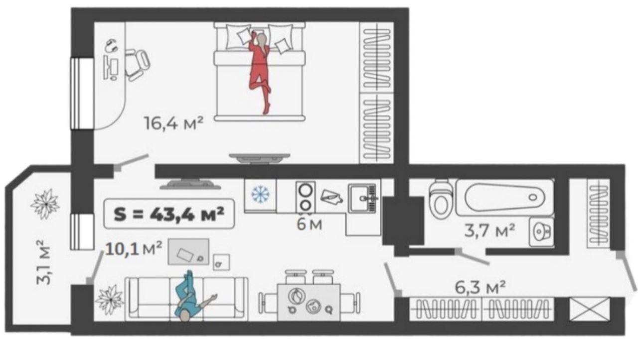 БЕЗ ПЕРВОНАЧАЛЬНОГО ВЗНОСА! Срок сдачи дома лето 2026г. Квартира сдается в предчистовой отделке